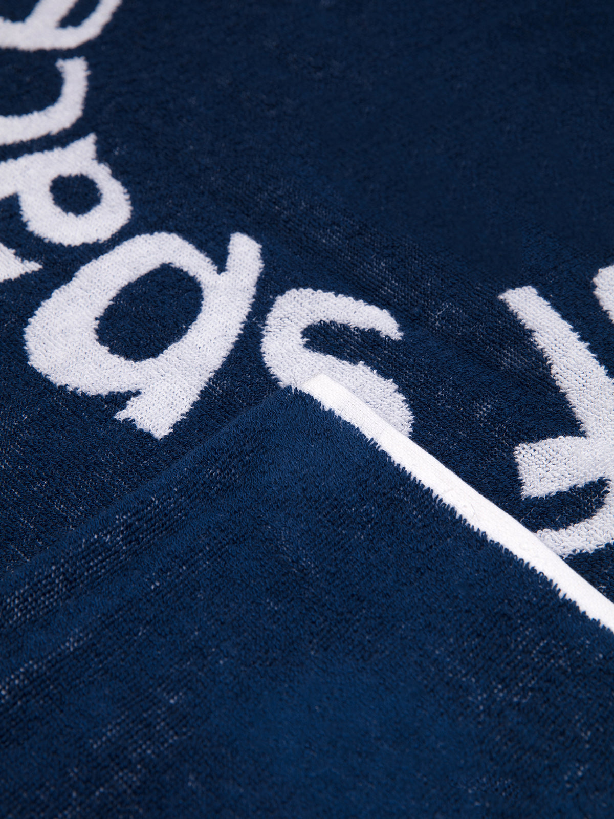 Önü logolu, lacivert plaj havlusu